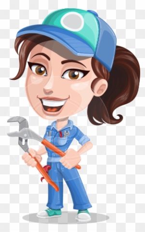 Select from premium Female Construction Worker Cartoon images of the highest quality. Smiling repairman holds wrench holds coffee and shows ok sign. Download high quality Female Construction Worker clip art graphics.